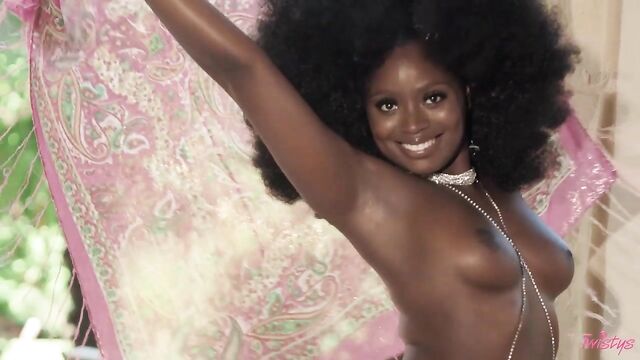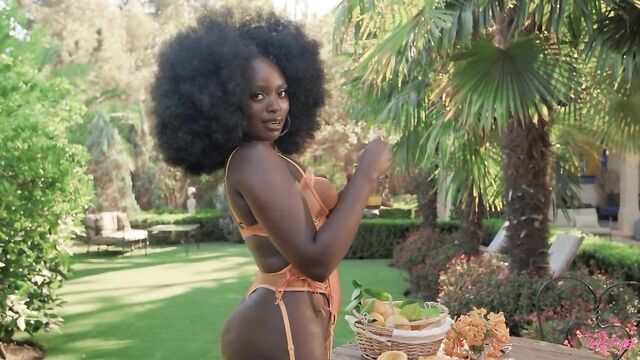 Description: It's time for a bountiful harvest with your beauteous September Twistys Treat of the Month, Elsie! Join her in a paradisiacal garden as she takes a dip in a pool filled with rose petals, stripping out of her pink bikini to swim naked and twerk her booty in the water. Next, Elsie strolls through a sunny orange grove, plucking ripe fruit from the tree and teasing you as she takes off her bright lingerie to let the fresh juice run down her skin. Finally, Elsie does a sensual dance with a feathered fan and a shimmery shawl, wearing nothing but sparkling jewelry on her lush form. She shows you the meaning of delight as she uses a toy on her clit and fingers her pussy until she orgasms!