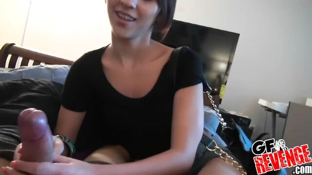 Description: Tezza was looking super cute and really HOT, as she typed away at the computer and chatted on the phone with a friend. When her boyfriend asked her why she was all dressed up and looked so sexy, she told him she had a job interview. But he had something else in mind for the afternoon, as he filmed her on his video camera and stroked his cock openly while watching her. Tezza thought it was amusing. She even laughed about it with her friend Jessica on the phone. The crazy thing is his approach actually worked. Once his cock was rock hard, Tezza couldn't turn down the offer for a quickie. Even after walking out the door for her interview, she immediately turned back for that hard dick. After some incredible lip-smacking, cock sucking, Tezza was ready to get fucked. She wasted no time mounting that cock and riding it deep into her pussy. She thrust hard and fast until this sexy, slim, teen Latina was orgasming. Her man got inspired and stroked that pussy hard until he was jizzing all over her sweet hot tits. Tezza immediately said she hated him for making her late. And yet she blew him a kiss and told him that she loved him. Don't miss a second of the crazy HOT Tezza giving an electrifying performance on this GF Revenge sextape.