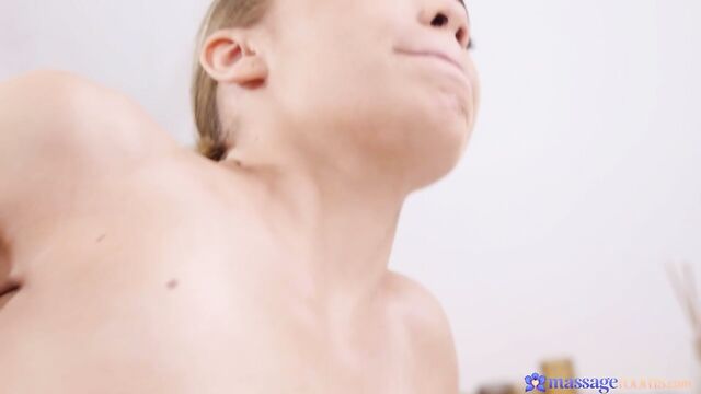 Description: Blonde-haired beauty Rika Fane is enthralled by the sight of Marvin Straight’s hot, wet body as he takes a shower. When the handsome stud steps into the sauna, Rika strips naked and follows him inside for a steamy makeout session! The petite Czech bends over and treats Marvin to a sensual blowjob, then she sits on his long, thick cock to ride it in cowgirl. Dark-haired stud Marvin eats out Rika’s tight pussy before penetrating the tattooed babe from behind doggystyle, then the pair have a sexy side fuck on the massage table. To finish, Rika bounces some more on Marvin’s lap until the well-hung hunk pulls out to cum all over her nice, firm ass!