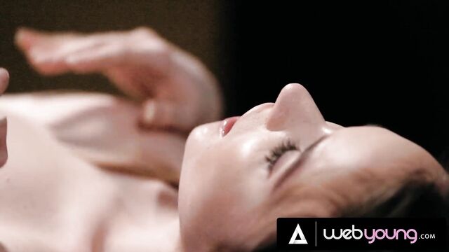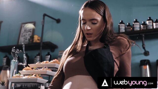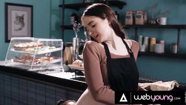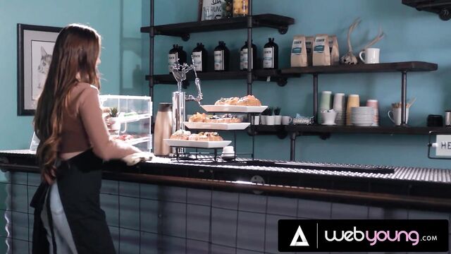 Coffee shop dirt with cheerful Hazel Moore and Aria Valencia from Web Young