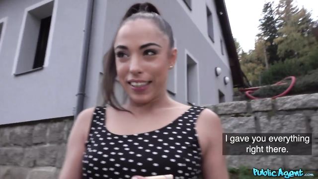 Description: I saw thick Latina Anastasia Brokelyn walking down the street, so I asked her if she knew where the hotel was located. Turns out, Anastasia was a tourist too, and didn't know where the hotel was. She was in Prague on a romantic getaway with her boyfriend, so I changed the subject, and asked her if she had ever though about being a model. I told her I was looking for bikini models, and that she had the body for it, and to my surprise, she hiked up her skirt! I offered her some euros for a casting, and found Anastasia to be quite the exhibitionist. She showed me her pussy, and for more money, she let me lick it. We were kind of exposed, so I asked if she would go somewhere a little more private with me. She was glad to: it was her sexual fantasy. As we walked, she showed me her tits, then got onto a picnic table so I could eat her out. Anastasia sucked my cock, then I fucked her wet pussy until I could cover her with a facial.