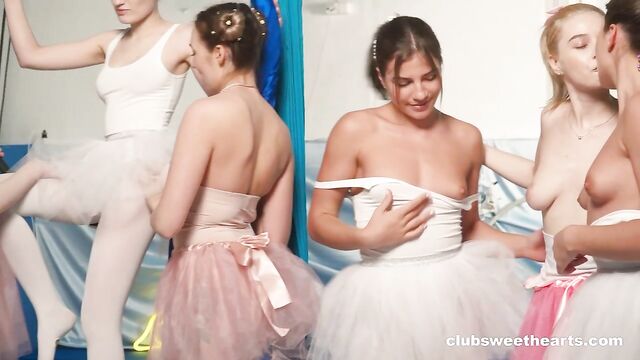Description: Our group of ballerinas will continue to rehearse tirelessly, refining their movements and striving for perfection. Rehearsal today was a little different as our horny sweethearts need to relax and get some well-deserved pussy pleasure leaving drooling by their artistry.