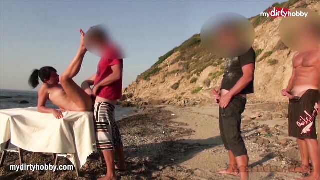 Exciting sweetie at beach movie