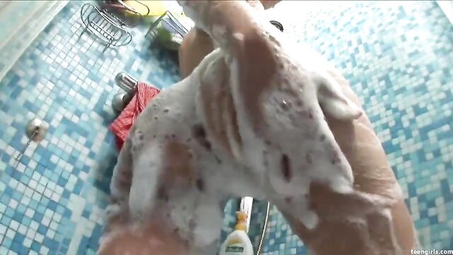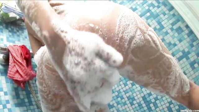 Good soloing angel Sonia is washing her nice round bottom