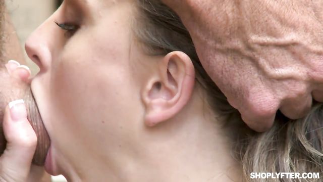 Pretty playful shoplifter Aften Opal pays for her sins in the back office