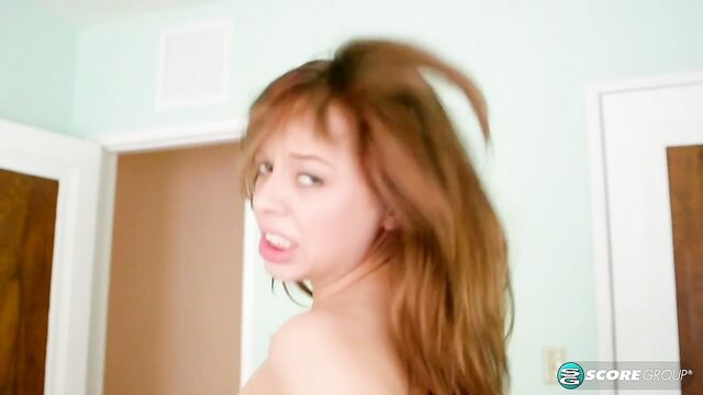 Redhead girlfriend Aurora Monroe feels a long dick in her shaved pussy