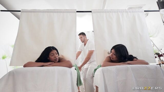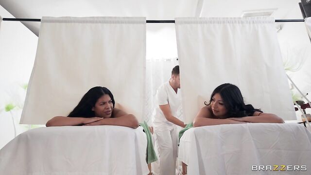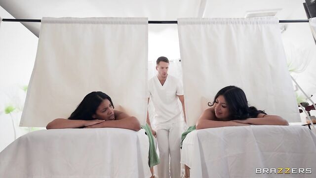 Description:After a stressful week Cami Strella takes Maya Farrel to unwind with a relaxing day at the spa. This spa, however, isn’t just like any other. With its curtained massage tables and its silent masseur, Dan Damage, the unconventional setup is perfect for Cami, who’s looking for more than just a rubdown – she wants some dick! While Dan oils up and massages the girls’ legs and feet, his skilled hands soon make their way to Cami’s pussy, fingering her while Maya is none the wiser. Cami soon can’t hold back and gives Dan a sneaky blowjob before they fuck on the table…And, of course, a day at the spa wouldn’t be complete without a facial!
