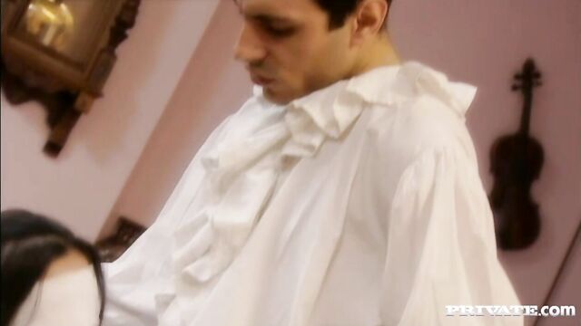Passionate double blowjob with a dick-sucking Vanessa May