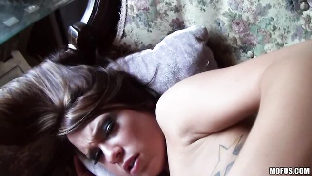 Description: Check out this perfect amateur submission we got today! The hungry whore in this video got right to the point sucking her man's cock, and after she'd crammed the whole thing down her throat, jumped onto the couch to get fucked hard while he filmed!