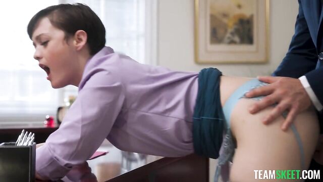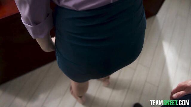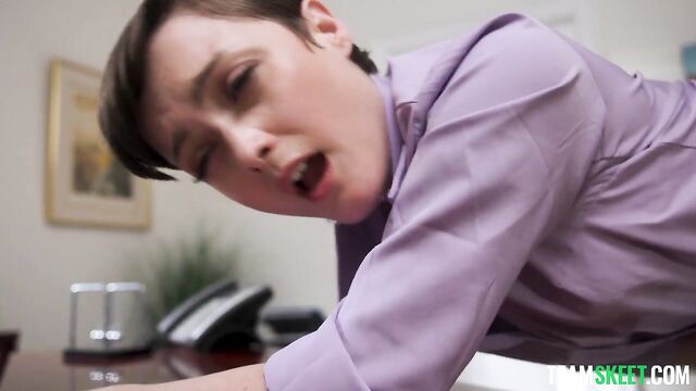 Description: Jade’s new boss, Robby, is a bit of a hard ass. He has an unorthodox approach to mentorship, and his presence is commanding and stern. Still, Jade finds herself entirely smitten by his assertive demeanor. She’s never had a boss quite like this before, and the longer she works for him, the hornier she becomes. When Robby bends Jade over the desk and spanks her while she reads a letter, Jade is at first taken aback. There was no way this was appropriate, but hell, if her pussy wasn’t getting wetter and wetter with each spank. Dumbfounded by her new attraction to being the submissive secretary in this odd boss-employee relationship, Jade touches herself as soon as she finds herself alone. Jade rubbed her clit, imagining all of the ways she could submit herself to Robby and how good it would feel having his cock pressed against the inside of her vaginal walls. Jade knew she had to have Robby’s cock one way or another, but she had to figure out how to get it. Being the powerhouse he is, Robby would not simply indulge Jade’s desires - she would need to earn his attention and his cock. As their relationship unfolds, Robby’s grip on Jade tightens, and soon, Robby is all Jade can think about. Jade attempts to make her move on Robby. She bends herself over, placing her elbows on Robby’s desk so that she is at eye level with him. Robby stands up and positions himself behind the sexy, petite secretary. Robby lifts Jade’s dress and eats her pussy from behind. He wants to make sure she is good and wet before he slips his cock in. When he does fuck her, Jade feels the sexual tension that has been mounting in her mind begin to release. It’s pure bliss having Robby’s cock thrust back and forth, in and out of her. Dreams of getting fucked in the office had filled Jade’s head for days, and her fantasy was finally becoming a reality. Robby fucks Jade hard, placing her in various positions and thrusting his cock in her as deep as it will go. To reward Jade for her dedication as an employee, Robby pumps his hot load into her eager mouth. On her knees, Jade looks up at Robby lovingly as he lets the cum drip down from the head of his dick and onto her extended tongue. Jade makes sure not to miss a drop and savors every bit of cum her boss has to offer. Robby and Jade breathe deeply, bathing in the intensity of the moment. Afterward, it’s right back to work. Robby has big expectations for Jade, and this is only the beginning.