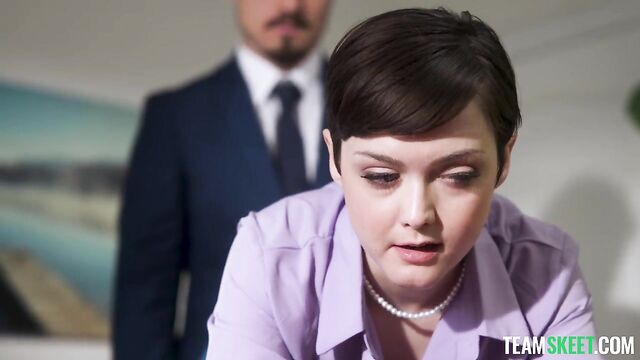 Description:Jade’s new boss, Robby, is a bit of a hard ass. He has an unorthodox approach to mentorship, and his presence is commanding and stern. Still, Jade finds herself entirely smitten by his assertive demeanor. She’s never had a boss quite like this before, and the longer she works for him, the hornier she becomes. When Robby bends Jade over the desk and spanks her while she reads a letter, Jade is at first taken aback. There was no way this was appropriate, but hell, if her pussy wasn’t getting wetter and wetter with each spank. Dumbfounded by her new attraction to being the submissive secretary in this odd boss-employee relationship, Jade touches herself as soon as she finds herself alone. Jade rubbed her clit, imagining all of the ways she could submit herself to Robby and how good it would feel having his cock pressed against the inside of her vaginal walls. Jade knew she had to have Robby’s cock one way or another, but she had to figure out how to get it. Being the powerhouse he is, Robby would not simply indulge Jade’s desires - she would need to earn his attention and his cock. As their relationship unfolds, Robby’s grip on Jade tightens, and soon, Robby is all Jade can think about. Jade attempts to make her move on Robby. She bends herself over, placing her elbows on Robby’s desk so that she is at eye level with him. Robby stands up and positions himself behind the sexy, petite secretary. Robby lifts Jade’s dress and eats her pussy from behind. He wants to make sure she is good and wet before he slips his cock in. When he does fuck her, Jade feels the sexual tension that has been mounting in her mind begin to release. It’s pure bliss having Robby’s cock thrust back and forth, in and out of her. Dreams of getting fucked in the office had filled Jade’s head for days, and her fantasy was finally becoming a reality. Robby fucks Jade hard, placing her in various positions and thrusting his cock in her as deep as it will go. To reward Jade for her dedication as an employee, Robby pumps his hot load into her eager mouth. On her knees, Jade looks up at Robby lovingly as he lets the cum drip down from the head of his dick and onto her extended tongue. Jade makes sure not to miss a drop and savors every bit of cum her boss has to offer. Robby and Jade breathe deeply, bathing in the intensity of the moment. Afterward, it’s right back to work. Robby has big expectations for Jade, and this is only the beginning.