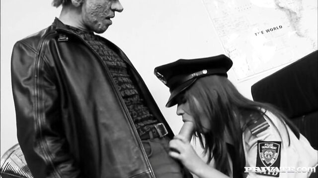 Description:A couple of guys argue while Natali sits by at the desk. One of the guys demands that she suck his cock so she dutifully pulls his fat dick out and starts sucking on it. She slides her hand up and down that thick meat while he builds closer to an orgasm. He gives her a shot of cum on her tongue.
