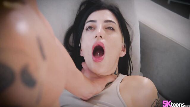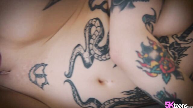 Description:Emo babe Tabatha will happily strip down to show off her perfect tattooed body but the boots stay on! Even while getting her pink pussy rammed by Jason's cock. She loves having her throat fucked until he sprays her with a hot load.