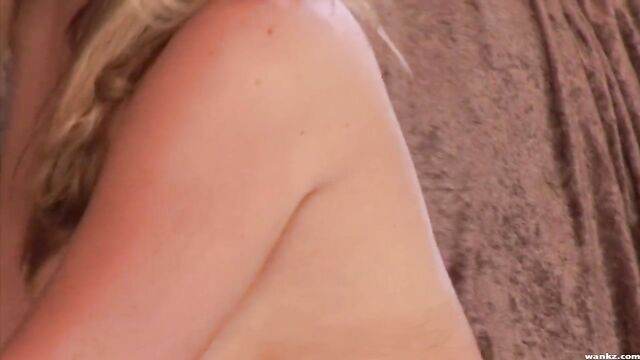 Beautiful blonde Holly Morgan stimulates her hungry wet pussy