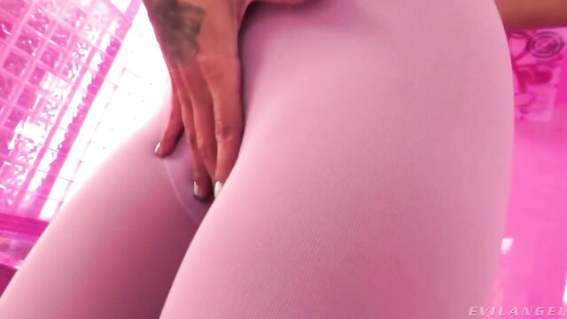 Description: Cute, young porn starlet Nina White models sheer, lavender pantyhose with high heels and a see-through bra, stripping and teasing through a sexy intro. The fit vixen plays with her perky tits and fondles her pussy, hungry for director/stud Mick Blue's big cock. Before long, Mick pours oil over her booty while Nina rubs the lube deeply into her tight leggings. She rips a hole in the crotch of her stockings and masturbates, and she caresses her clit as Mick fucks her slit. Nina takes an intense rod ride; Mick pounds her poon. They kiss and caress passionately as they fuck. The insatiable girl gives a slobbering blowjob, lapping balls while her drool drips down his shaft. For the finale, Nina drops to her knees and opens her mouth widely for a creamy cum facial. Hot sperm seeps down her chin, and she swallows semen.