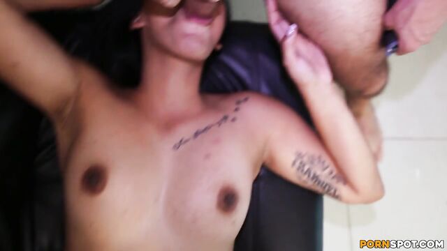 Description:So we have the quiet and shy Camila visiting today. She was looking so good in her little thong and bra. She showed off her body a little bit and even did some squats and shook her phat ass for us. Doing that got her in the mood because she then crawled on all fours right towards my cock and started sucking away. She got rewarded with some hot American jizz on her face.