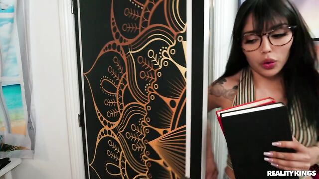 Description: Laney Grey brings her BF Hollywood Cash back to her dorm for a BJ, but they attract an audience: her horny nerd neighbor, Vanessa Sky. Vanessa watches them through the open door, touching herself, then goes into her room to eavesdrop some more. Before they can start banging, Vanessa bangs on the wall! Hollywood comes over to see what the ruckus is and finds her playing with her pussy, so he hurries to eat it. Vanessa sucks his huge dick and gets it all for herself while her neighbor is none the wiser.