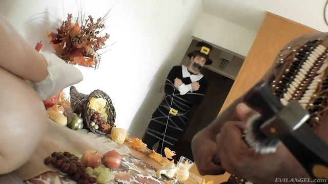 Description:All-natural settler Jane Wilde celebrates the first Thanksgiving trussed up like a stuffed turkey with a carrot up her ass! But her husband is shocked to learn that their only Native guest is well-hung ebony stud Rico Strong. Rico ties up the host and makes him watch as he strokes Jane's white pussy. His big black cock fucks her creamy cunt and tight little butthole, and the Pilgrim wife feasts on his dark meat with an ass-to-mouth blowjob. This interracial anal cuckolding leaves Jane's mouth filled with sperm.