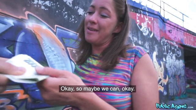 Description: I saw Elisa Tiger get off the bus, and noticed what a great ass she had. I walked up and sparked a conversation, then told her I had an offer for her. For a good amount of money, Elisa agreed to flash me her boobs right there in the street! Elisa really liked money, so she agreed to go for a walk with me. When we found some privacy, she got on her knees and gave me a blowjob! My big dick turned her on, so she let me pound her shaved pussy missionary and doggystyle. She was so happy with my big dick that she let me cum on her face!