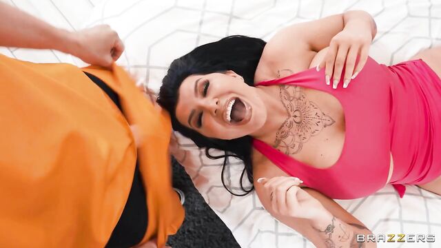 Description: Hot body babe Romi Rain is released from prison, but she’s not granted total freedom. Instead, she’s guarded by cop Mick Blue in her home and forced to wear a house arrest ankle bracelet. As soon as Romi’s alone, she’s thinking about one thing: cumming. She gets to work with her wand when Van Wylde, her badass bf who just broke out of jail, shows up to surprise her. Excited to show off her new ankle jewelry, she gives Van a footjob and move quickly on his cock, fucking like she wants to get caught. Mick hears noises and decides to investigate. Romi tries to stop Mick from coming in and pulls out his giant cock. Romi’s impressed and yanks Mick into her room to jumps his dick. Romi wants two cocks at once and sneaks Van’s cock into a threesome. Both guys forget their vocations in life and enjoy this double dick down, while Romi works out a way to escape, after a double cumshot.