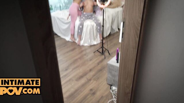 Intimate POV featuring Angelika Grays and Anastasia Brokelyn's triple blowjob sex