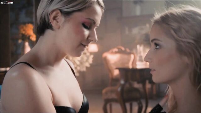 Title:Pin-up Kittina Clairette and Sharon White's blonde sex