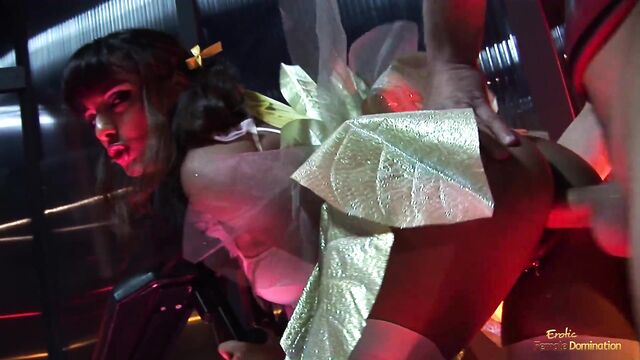 Enticing courtesan's pussy licking clip