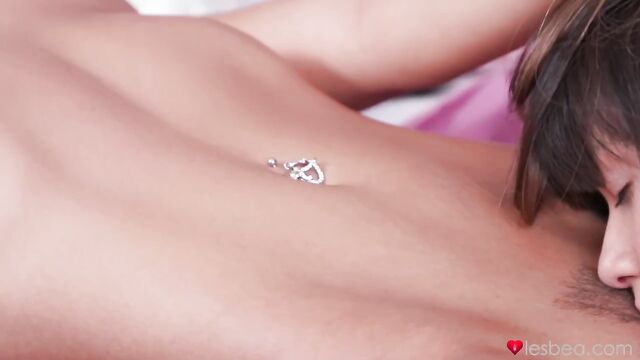 Anna Rose opens her shaved pussy for a passionate girlfriend