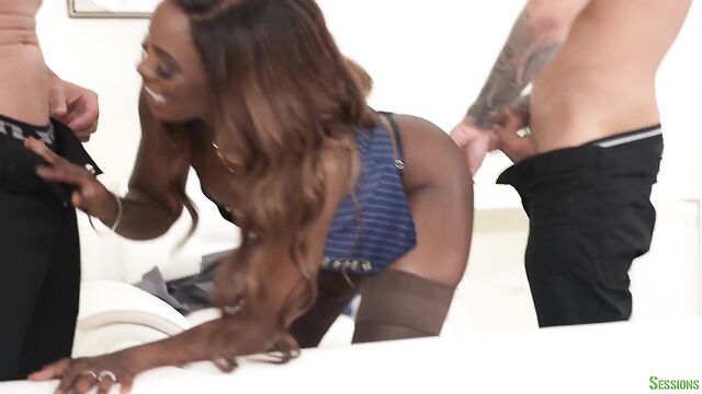Good interracial double penetration with a hot ebony Ana Foxxx