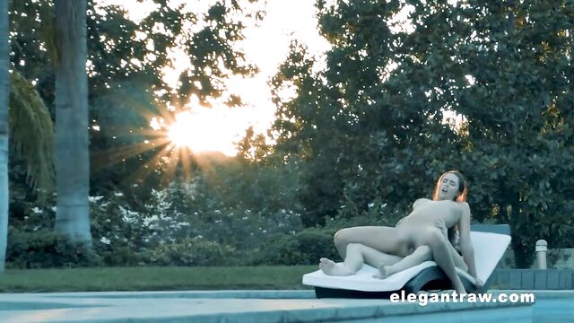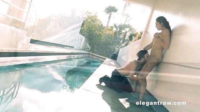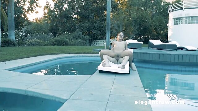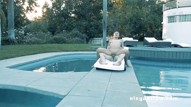 Flexible brunette Anastasia Black nicely fucked on the poolside