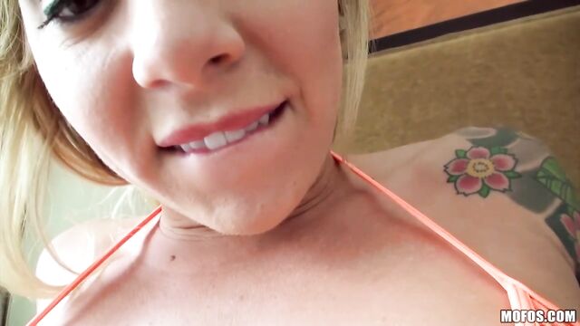 Beautiful POV dick-sucking session with a hot blonde Riley Reece