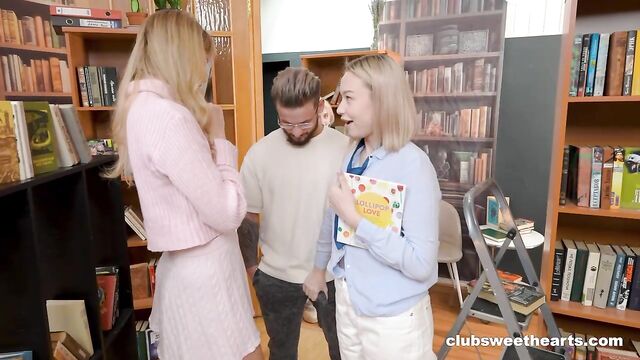Gorgeous library sex with hot dolls Novella Night and Sara Bork