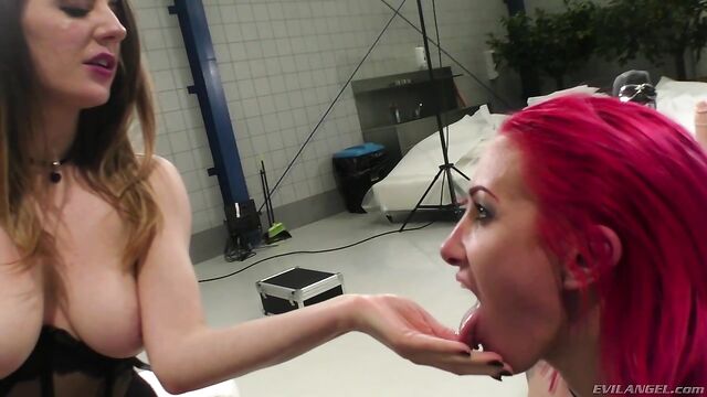 Description: Red-haired lesbian domme Angel Long knows how to handle a submissive slut like Nataly Gold. She shoots video while slapping the pretty brunette's face, choking her, thrusting fingers down Nataly's throat and making her spit to lubricate her swollen pussy. Angel fucks the sexy girl's face with an enormous strap-on dildo, then rams it up Nataly's ass! Finally, curvaceous brunette Samantha Bentley arrives and completes an intense lesbian threesome of anal toys, orgasmic vibrators and ass-to-mouth domination.