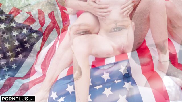 Description: Erica Candfield celebrates the 4th of July with some fun by the pool and massive loads of jizz on her face!