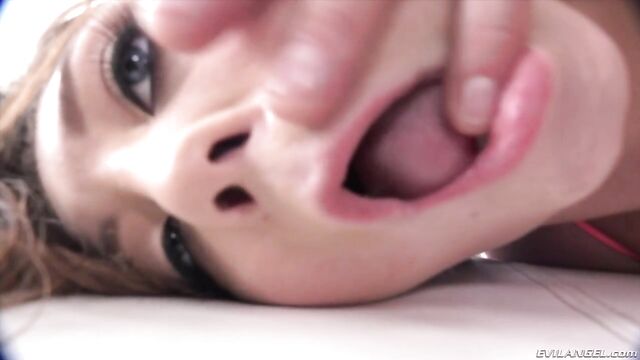 Description:Petite, longhaired Jojo Kiss strips off a tiny bikini, revealing a thick bush above hairless labia. She oils her small, natural tits and Toni Ribas' ready erection; the stud director's POV footage shows Jojo's big, blue eyes as she slobbers on his cock. She sits on his meat, moaning and masturbating, and sucks dick pussy-to-mouth. In more POV-style visuals, Jojo's ass fills the screen as she fucks, fingering her own asshole. Laid on her back, she whimpers baby talk. Dominant Toni chokes and spits on the wailing, young slut; he spanks her hard and pulls her hair; the manhandling makes Jojo say, 'Fuck me, Daddy!' Through a mouthful of cum bubbles Jojo declares herself an 18-year-old whore!