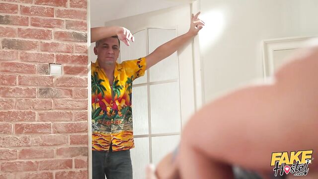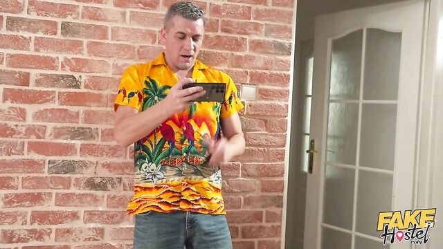 Description: When El Papi checks into the Fake Hostel, he doesn’t expect to be seduced by busty MILF Mar Bella! The attractive blonde approaches El Papi and passionately kisses the hot college student while Steve Q captures everything on camera. Next, the cum-hungry Spanish babe treats El Papi to a sexy deepthroat blowjob, and then Steve decides to join in to make it a threesome, banging Mar from behind in standing doggy! Still sucking and slurping on the dark-haired stud’s thick dick, Mar is drilled by Steve in an intense side-fuck, and then it’s El Papi’s turn to give the curvaceous babe a hard pounding in missionary position while she gobbles up Steve's throbbing erection! Afterwards, Mar puts her thicc ass on display, bouncing her tight pussy in reverse cowgirl on the well-hung Euro's lap, and then it’s time for Mar to receive a messy double facial, with the cum dripping all the way down to her big, juicy rack!
