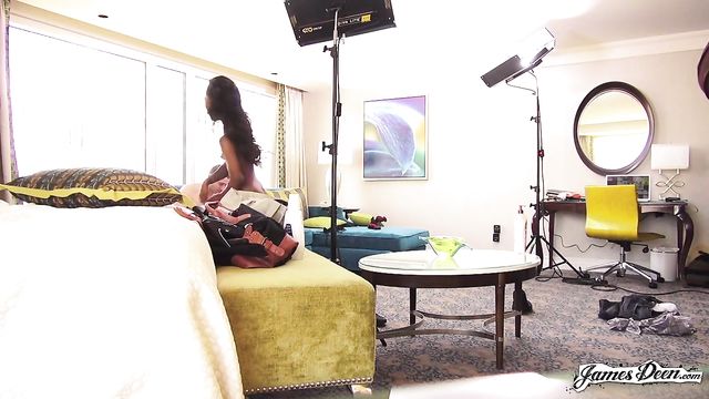 Description: We open up behind the scenes with the petite ebony queen, Sarah Banks, taking selfies of her bodacious booty on an aquamarine suede couch. She’s asked whether she likes cats or dogs, she says she hates walking dogs, so she prefers cats and goes on to mention that her cat is a bitch. However, she continues and says that she just loves animals in general. Sarah says she’s really into anything when it comes to sex except having her hair pulled because her hair is sacred and takes really good care of it and don’t fuck with her nipples, anything else is great, especially spit, she loves getting spit in her mouth. She models a little bit for some pictures and shows off her awesome ass. They go over the consent rules and if Sarah ever feels uncomfortable to speak up and let them know she doesn’t like what’s going on or if she needs a sip of water, adjust herself and so forth. She randomly gets asked what her favorite cereal is and automatically answered Cinnamon Toast Crunch, which is my favorite cereal, you don’t know who I am viewer, but I just thought I’d let you know that the person writing this also likes Cinnamon Toast Crunch. In the next scene, they’re setting up a scene where Sarah is sucking James’ dick, she is very good. He then begins to fuck her while she holds a bottle of lube, her face shows that she truly enjoys being penetrated. James gingerly fucks her ass and she moans lightly with slight smiles on her face. In the next shot, James takes some very constructive criticism about the ending of a scene. Sarah cleans some cum off her face because it would irritate her eye and James apologizes as it is not easy to aim where his cock will spit out cum. He asks her who her favorite serial killer, she answers Ted Bundy, and what certain skills she has that would help her in a zombie apocalypse, she replies that she’d be a really good head slicer. Camerawoman asks Sarah what dirty names she likes to be called, Sarah likes to be called a bitch a lot, whore, slut, cunt, dirty bitch, she just wants to be told how filthy she is. They film the beginning of the scene where Sarah shows off her super sexy body. They talk about and fuck around about the shots they’ve taken and the nitty-gritty shit camera people gotta do. Sarah spreads her ass over the couch to get some cool and sexy shots. Sarah wonders if people see her fucking through the windows of the hotels and that she’d like to go viral getting fucked on a balcony. A piece of advice she gives is to take it up the ass more, stay in school and don’t get cum in your eye.
