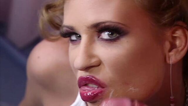 Glamorous babe with red lips Tea Blondie knows how to suck a dick