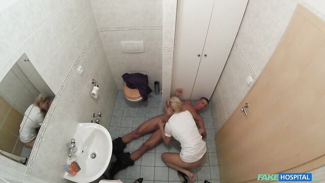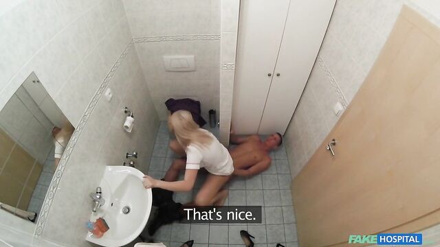 Description:I had a real weird case today. I had this guy come in and tell me he's been trying to get his wife pregnant for two years! We talked about possible solutions for awhile, it could be any number of things! I got to the point though, I said I'd need a sperm sample to test properly if it was that, which would be the most likely. He went out for a bit and then came back in saying he couldn't do it! I'd got so fed up by this point I just dragged him back in to the toilet and gave him some encouragement! I got down on my knees and started sucking his dick! After a while I could see he would need a lot more...so I pulled up my skirt, pulled down my panties and let him fuck me from behind! That really got his heart racing! After all that encouragement, I finally got a sample! All in a days work!