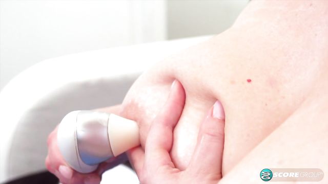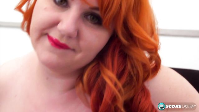 Lusty redhead BBW Katrin Porto takes her lovely white sex toy