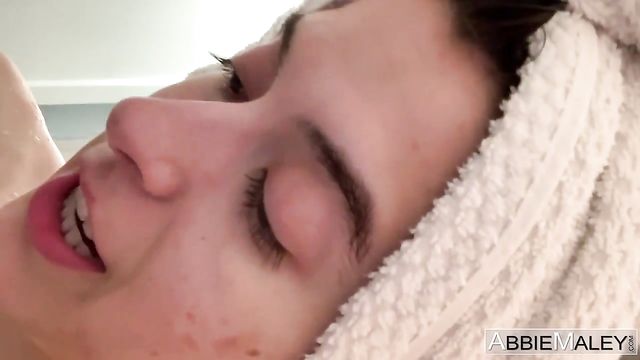 Description: Athletic babe Abbie Maley takes us into the shower with her, and then finds porn to watch while she masturbates in bed with a hitachi.