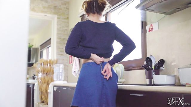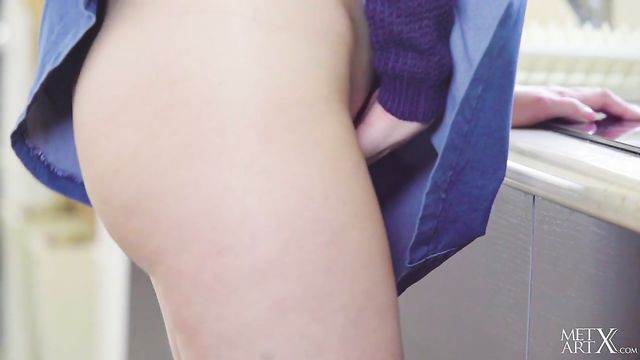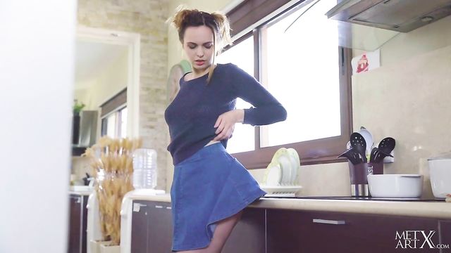 Description: As cute Ukrainian brunette Nasita cooks in her kitchen, things get hot and steamy. She hikes up her sweater and caresses her pert, perfect breasts and stiff nipples – then she begins to masturbate, stripping off her miniskirt and panties to reveal shaved pussy lips with a neat landing strip. Bending over, she plunges two manicured fingers deep inside of her snatch, then splays it open to strum her clit. Next, she sits on the counter, legs wide apart, her rosebud mouth pouting as her ecstatic moans get louder. Soon she’s totally naked and frigs herself to an intense orgasm, then tastes her sticky cum off of her fingers. As the camera lingers on her beautiful nude body, she resumes cooking, her lustful appetite satisfied for now at least…