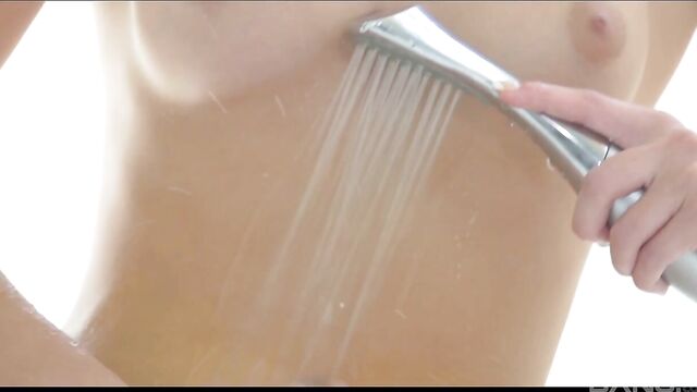 Aesthetic babe with shaved pussy Molly Manson is washing her crack