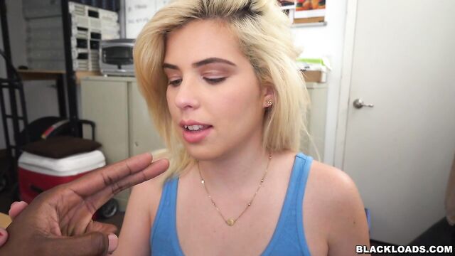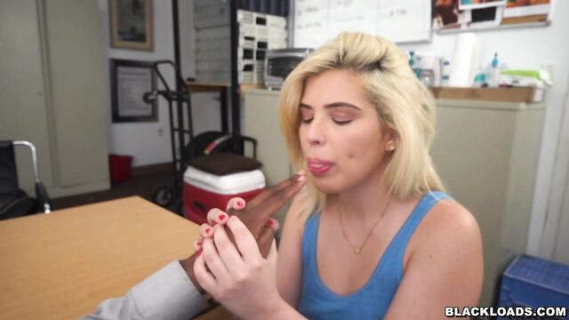 Beautiful blonde chick with round ass Rikki Rumor fucks with a black dick