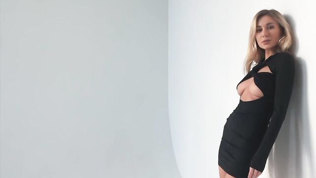 Description: Is there anything more appealing than the sight of a busty blonde in a little black dress? CandiceB knows it's not about what she wears but about what hides beneath the black fabric. In Video Release 510, the fiery StasyQ model teams up with Said Energizer's supreme camera to create a stunning masterpiece. The belle feels the urge to dance slowly while her naughty hands soon get a mind on their own. They lower, only to release a pair of big, perfectly round melons out of their soft prison. The light-haired goddess shakes them softly while feeling her pink nipples standing up from the arousal. It's not the end of the sizzling show. CandiceB lifts the dress, only to reveal her majestic behind. Does she wear any panties? You'll have to wait for CandiceB to lay on the white floor and spread her legs. It is worth the wait.